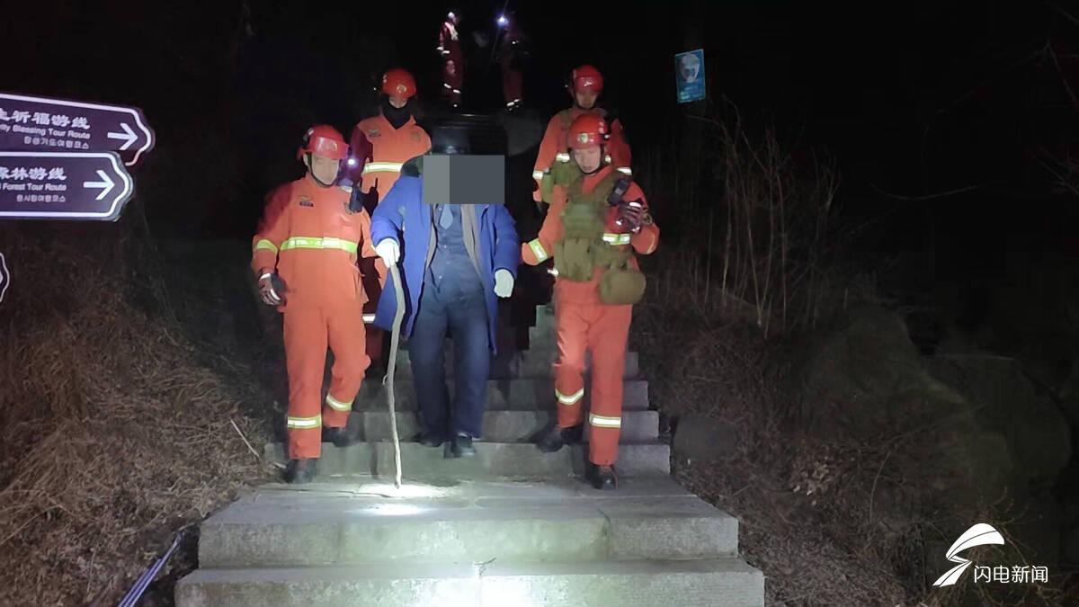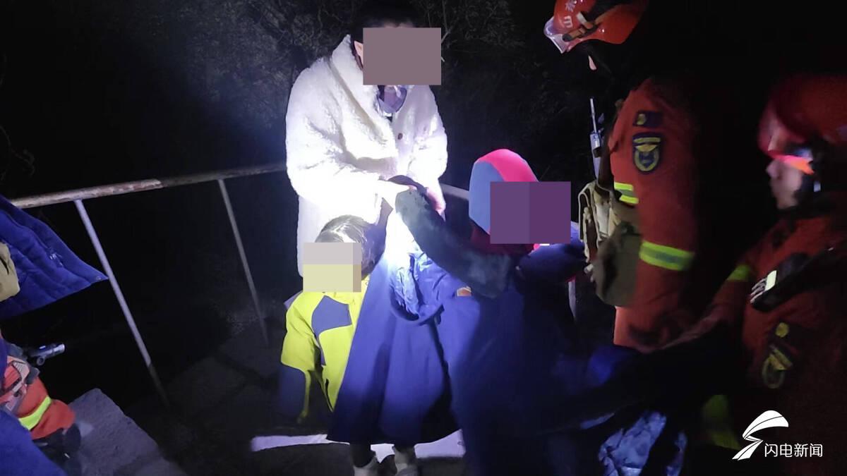 见状,救援人员立即将身上的棉衣脱下为两名儿童、同行的中年女子及老人穿上,随后小心翼翼抱起两名儿童,搀扶着老人,借助头灯微光辨识路况,在陡峭的山路上缓慢前行。经过20分钟的艰难跋涉,救援人员成功将5名被困人员护送至引鹤桥,随后用消防车将众人安全送达山下。